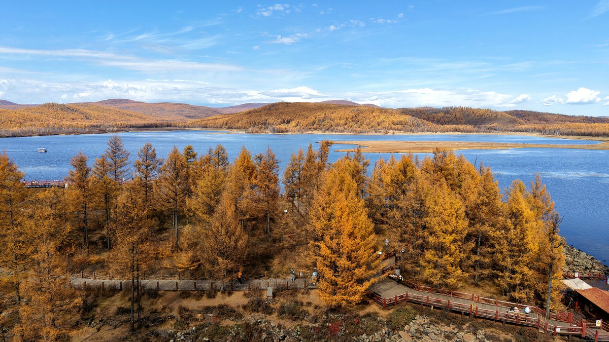 9月29日,空中視角下的內(nèi)蒙古阿爾山國家森林公園烏蘇浪子湖 北疆新聞?dòng)浾?張楊攝影