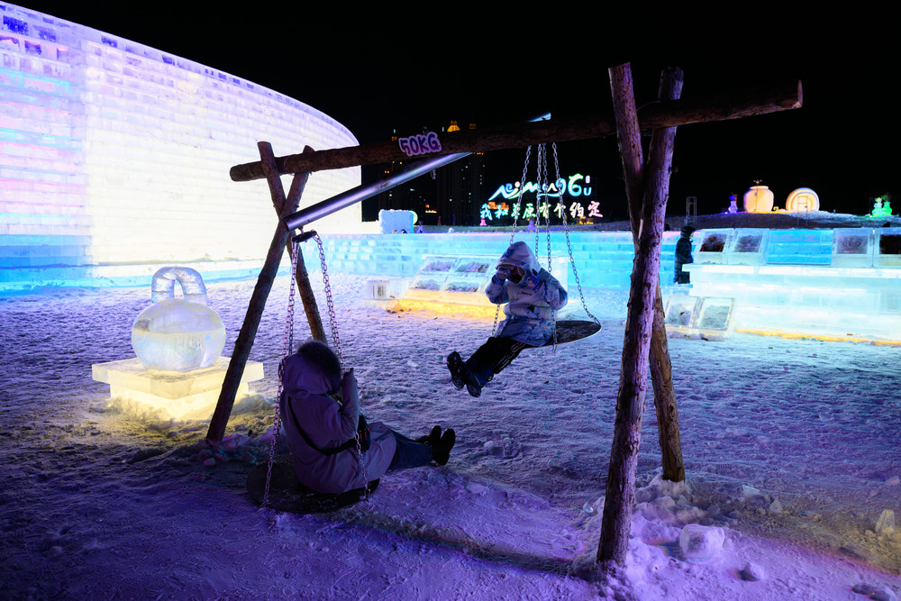 游客在《冰雪芳華》主題樂園內(nèi)游玩