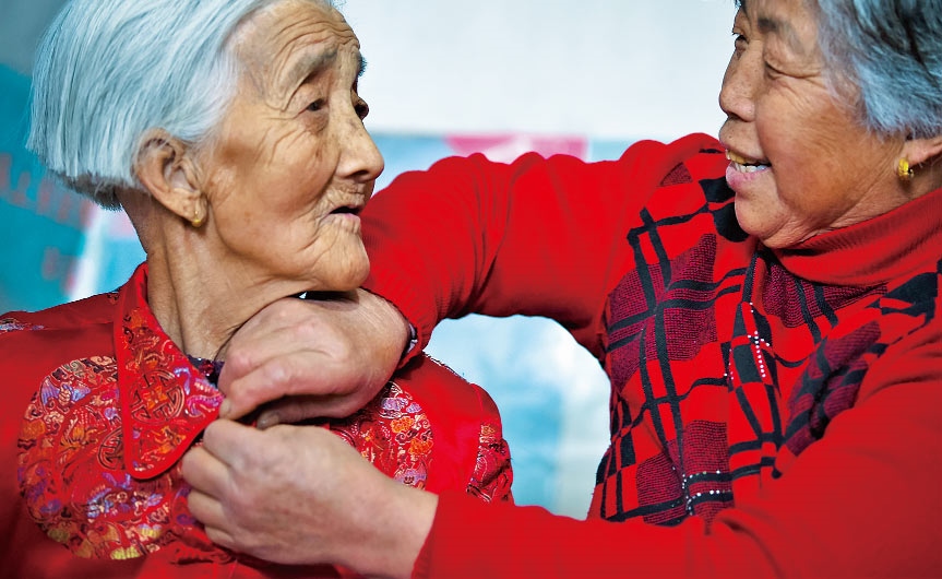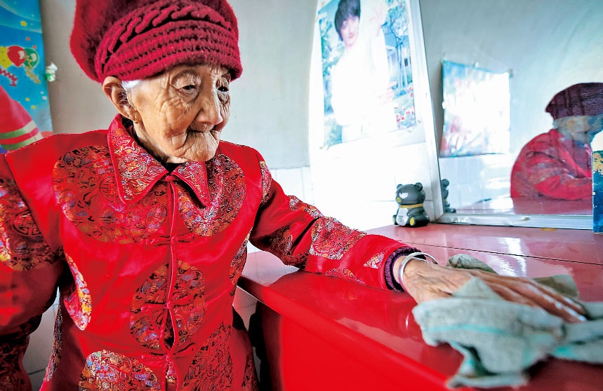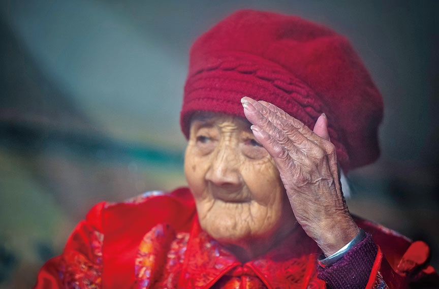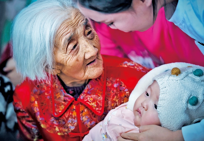 老人的兒孫們?nèi)缃翊蠖喽荚谕鈱W習、工作、做生意,大家族的成員日子都過得紅紅火火。對于老人來說,子孫滿堂是最幸福的事;對于孩子們來說,老人健康長壽,也是他們最大的愿望。五世同堂,98口人,百歲老人賈先女露出幸福的笑容。