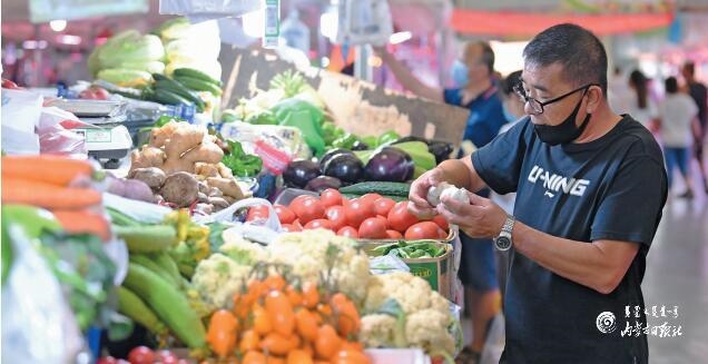 6月17日,呼和浩特市民在選購蔬菜。據(jù)全區(qū)各盟市上報(bào)自治區(qū)發(fā)改委價(jià)格監(jiān)測中心的監(jiān)測數(shù)據(jù)顯示:我區(qū)羊肉、雞肉、雞蛋、蔬菜類價(jià)格下降,牛肉價(jià)格上漲,豬肉、食用油、水產(chǎn)品價(jià)格略有升降,成品糧價(jià)格穩(wěn)中有降,豆腐、牛奶價(jià)格持平。雞蛋價(jià)格自5月上旬開始持續(xù)回落,地產(chǎn)蔬菜逐漸上市,全區(qū)蔬菜價(jià)格呈季節(jié)性下降趨勢。(內(nèi)蒙古日報(bào)社融媒體記者孟和朝魯攝)