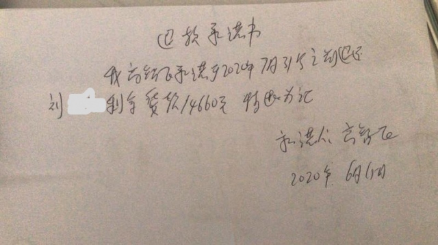為了不耽誤婚房裝修,劉先生又在居然之家選擇了其他品牌的衛(wèi)浴,并向高經(jīng)理提出退回未付貨的14660元貨款。但高經(jīng)理表示最近手里沒錢,不過,他答應劉先生,在7月31日前會全部退還,并且當場寫了一個退款承諾書。