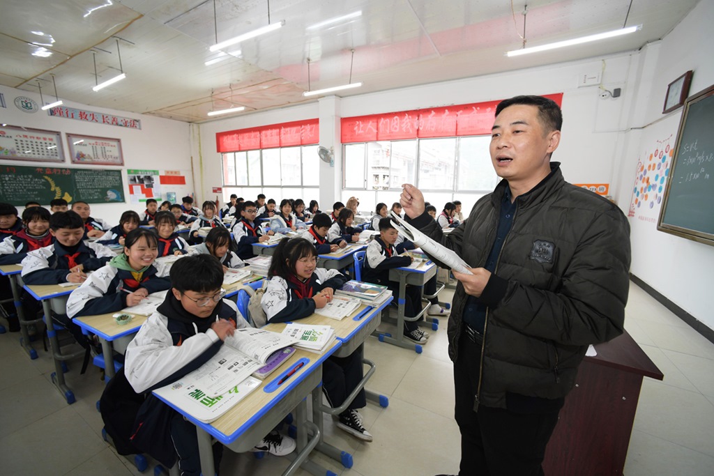 在貴州省黔東南苗族侗族自治州劍河縣第三中學(xué),來自浙江省杭州市淳安縣的對(duì)口幫扶教師蔡新民在給學(xué)生上物理課(2020年11月26日攝)。