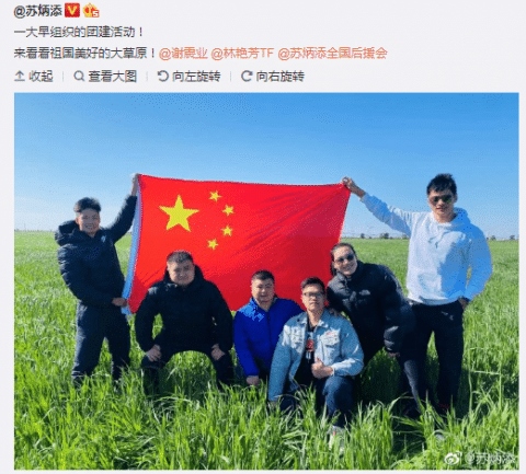 北京時(shí)間10月5日,亞洲飛人蘇炳添在社交平臺(tái)曬出在內(nèi)蒙古大草原游玩的圖片,他與謝震業(yè)高舉國(guó)旗,寫(xiě)道“一大早組織的團(tuán)建活動(dòng)!來(lái)看看祖國(guó)美好的大草原”。