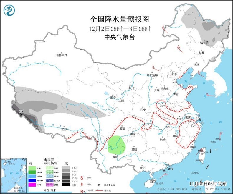 12月2日08時至3日08時,內(nèi)蒙古東北部、黑龍江大部、西藏西部和南部、青海南部等地部分地區(qū)有小到中雪,其中,西藏西南部部分地區(qū)有大到暴雪(10~15毫米)。四川南部、貴州西北部、云南東北部和中部等地部分地區(qū)有小雨。內(nèi)蒙古中東部部分地區(qū)有4~6級風。