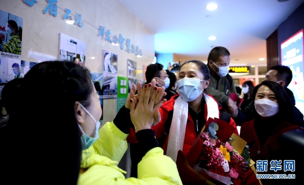 內蒙古農信女籃主教練鄭薇到達呼和浩特后,與前來迎接的球迷擊掌。新華網楊騰格爾攝
