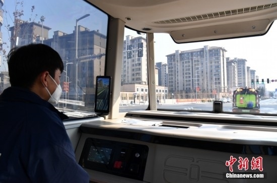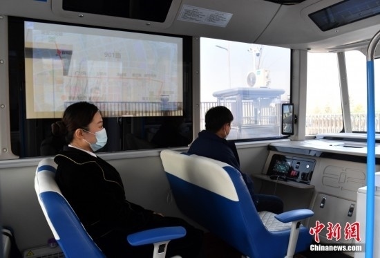 2月22日,智能網(wǎng)聯(lián)巴士901線測試車輛準(zhǔn)備發(fā)車。雄安新區(qū)的智能網(wǎng)聯(lián)巴士近期正在進(jìn)行投入運(yùn)營前的道路測試,該巴士配備了超高感度攝像頭、超聲波雷達(dá)、激光雷達(dá)、毫米波雷達(dá)等感知設(shè)備,組成了車輛的“眼睛”。車輛可自主識別紅綠燈、道路提示牌和車道標(biāo)線等,做出跟車、超車、停車等動作。中新社記者 韓冰 攝