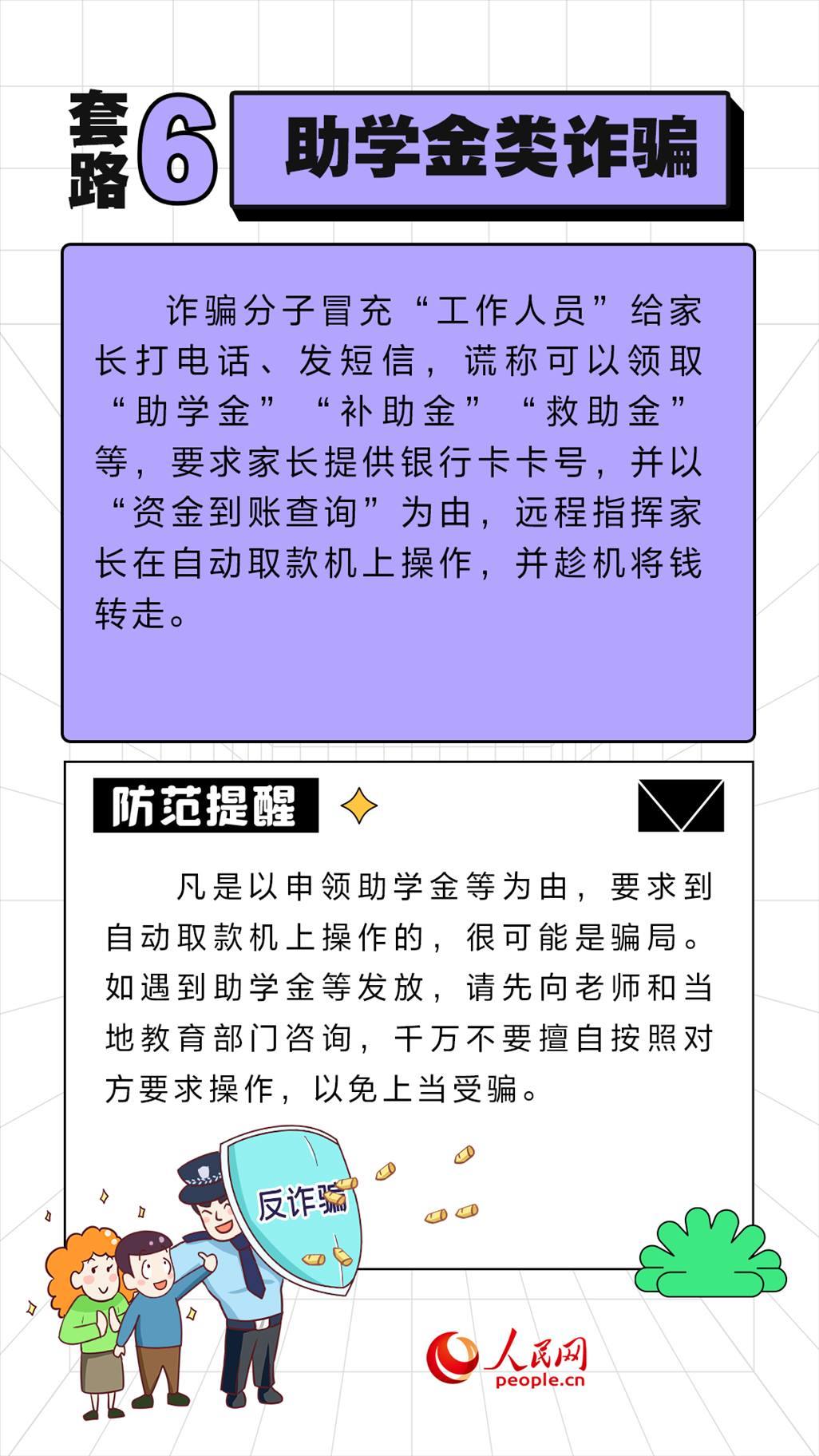 眼下正值開(kāi)學(xué)季,學(xué)生們又開(kāi)始了新學(xué)期的忙碌,殊不知詐騙分子也蠢蠢欲動(dòng),針對(duì)不同年齡段的學(xué)生“因人施騙”,令人防不勝防。人民網(wǎng)“求真”欄目整理了開(kāi)學(xué)季六種常見(jiàn)的詐騙套路,提醒家長(zhǎng)和學(xué)生注意防范。