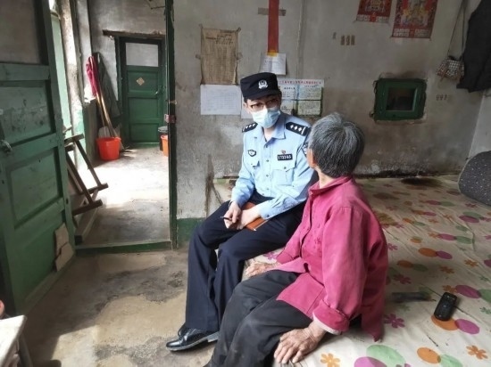 圖為移民管理警察王鐵映走訪慰問轄區(qū)獨(dú)居老人李淑蘭。