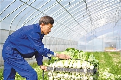 江西省上饒市鉛山縣通過“龍頭企業(yè)+村集體經(jīng)濟合作社+農(nóng)戶”模式,建設(shè)萬畝蔬菜基地,促進農(nóng)民增收。圖為3月6日,村民在鉛山縣永平鎮(zhèn)缸瓦窯萬畝蔬菜基地采收蔬菜。 丁銘華攝(人民視覺)