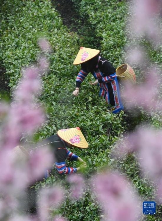 3月20日,在湖南衡陽(yáng)常寧市塔山瑤族鄉(xiāng),茶農(nóng)在茶園采茶。