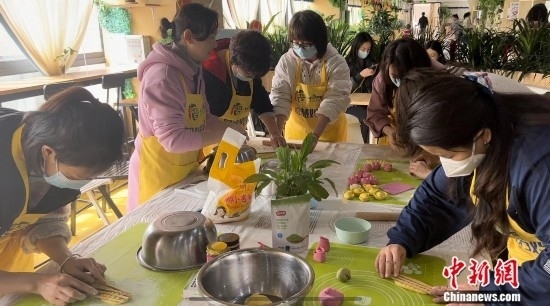 “智慧媽媽團(tuán)”成員們?cè)谧鳇c(diǎn)心、話家常。中新網(wǎng)記者 劉湃 攝