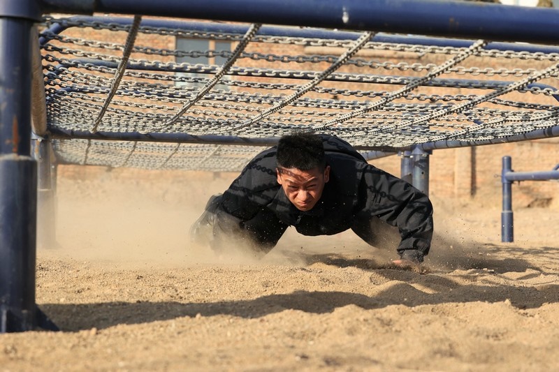 匍匐通過低樁網(wǎng)