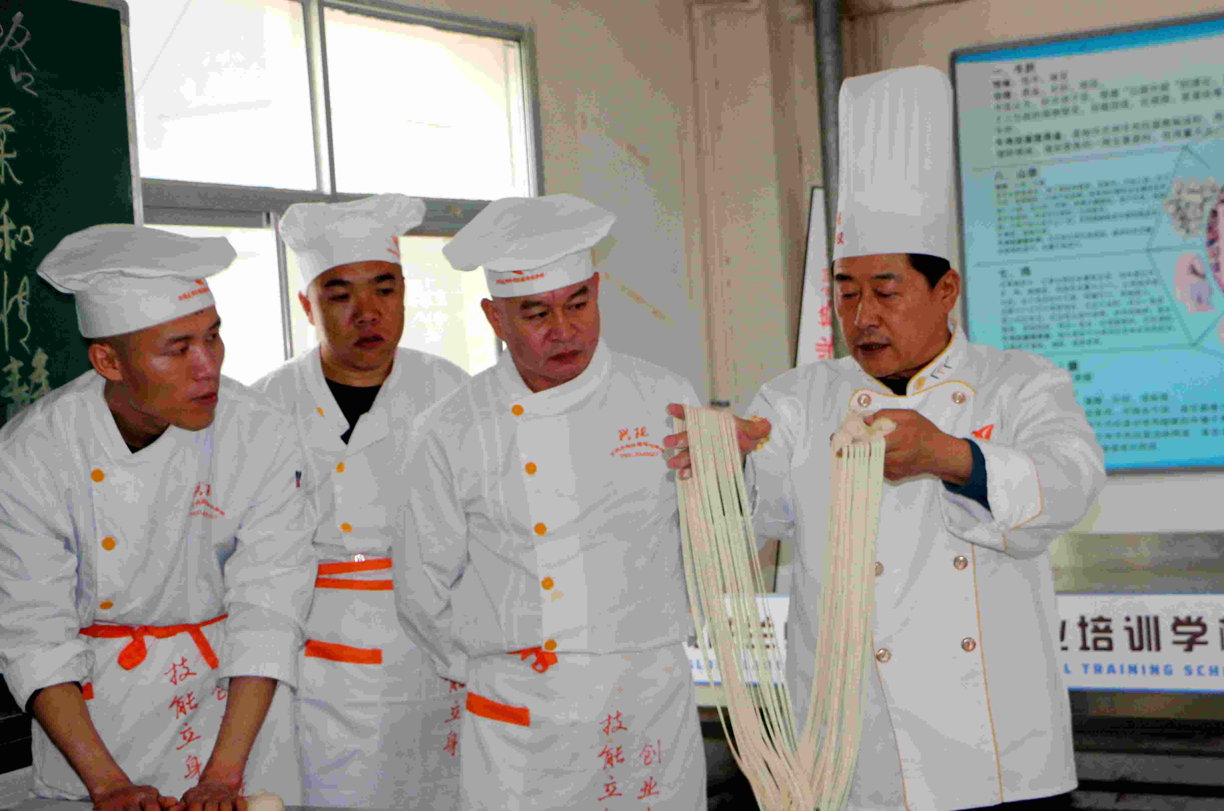 周興國正在教學員拉面技巧