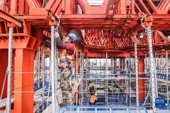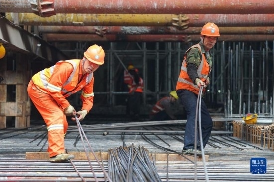 5月3日,在長沙西站建設(shè)工地,工人做混凝土澆筑前準(zhǔn)備。