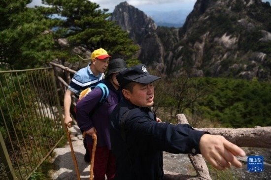 4月20日,秦志平在黃山風景區(qū)光明頂附近進行路段巡查。