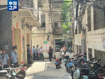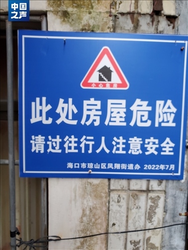 中國之聲報(bào)道播出當(dāng)天上午,瓊山區(qū)多個職能部門來到這棟樓下,安置仍居住在內(nèi)的居民。