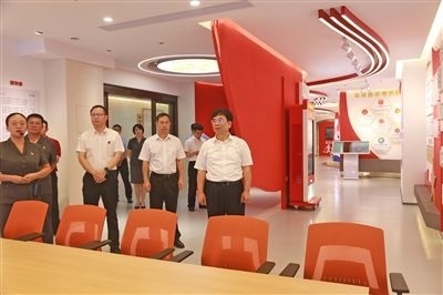 廣西高院黨組書(shū)記、院長(zhǎng)黃海龍(右一)在桂林中院黨建文化活動(dòng)中心調(diào)研。