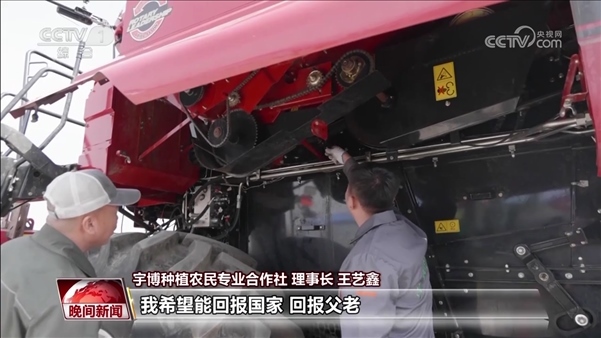 宇博種植農民專業(yè)合作社 理事長 王藝鑫:我就和父母說了我的想法,父母也非常了解當時農業(yè)的形勢,也都挺同意我的想法的。因為現(xiàn)在有很多新型的種地方式和新型農機具,年輕人可以研究研究這個新型種地方式,這樣也能使這個糧食產量得到提高,這不也屬于為家鄉(xiāng)作貢獻嘛。