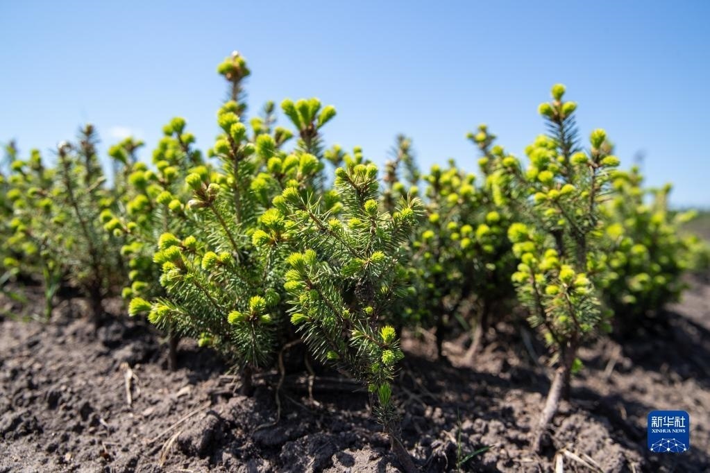 這是5月24日拍攝的伊春森工集團(tuán)上甘嶺林業(yè)局公司溪水林場(chǎng)內(nèi)栽種的紅松樹苗。