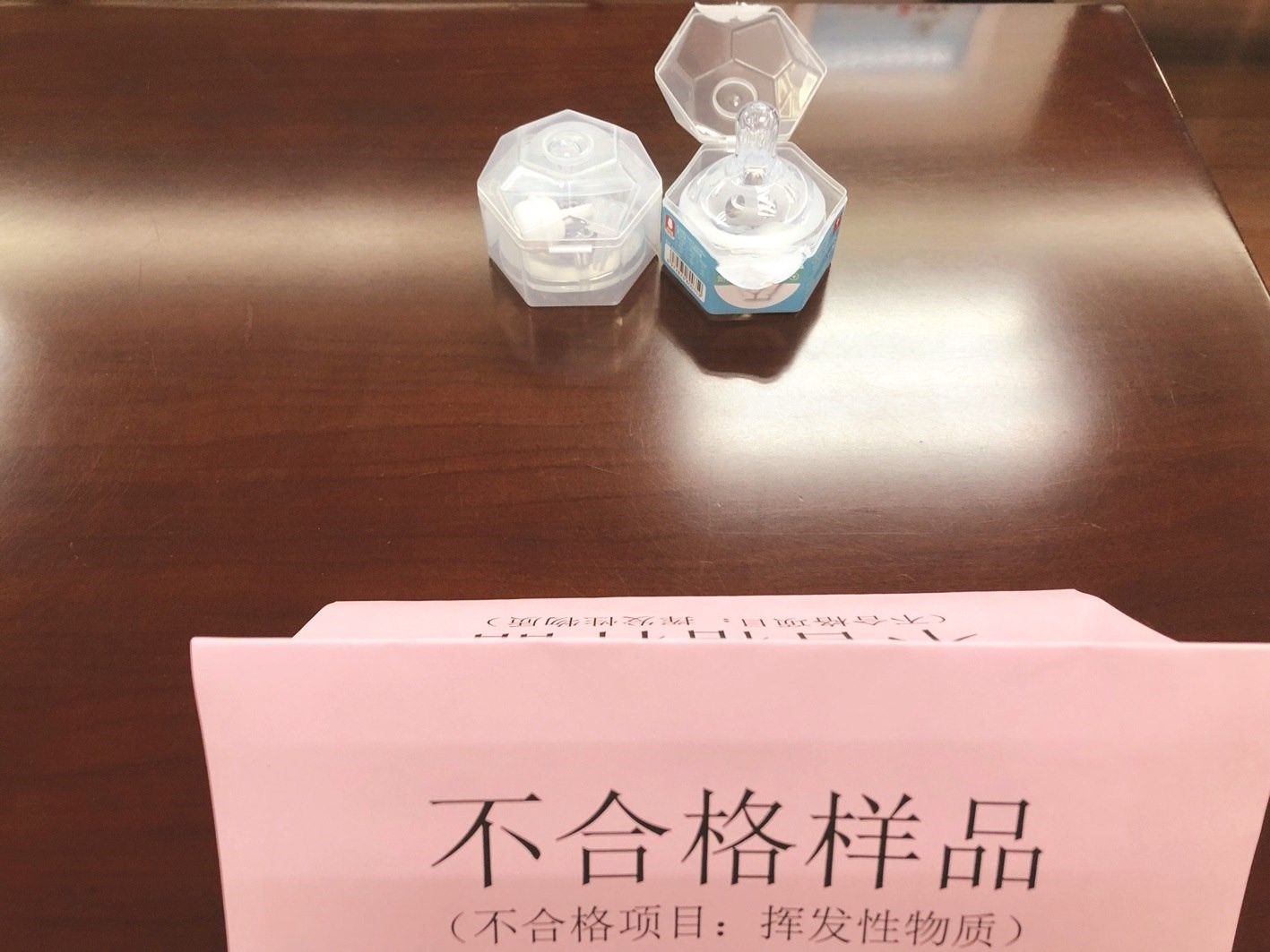 此次市場(chǎng)監(jiān)管部門還抽查了10批次奶嘴產(chǎn)品,經(jīng)檢驗(yàn),9批次合格,不合格1批次,不合格項(xiàng)目為揮發(fā)性物質(zhì)。