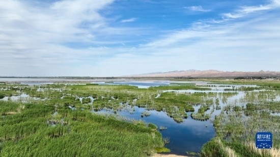夏日里,位于內(nèi)蒙古巴彥淖爾市烏拉特前旗的烏梁素海波光粼粼,風景如畫。