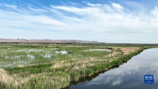 這是6月4日拍攝的位于內(nèi)蒙古巴彥淖爾市烏拉特前旗的烏梁素海(無人機照片)。