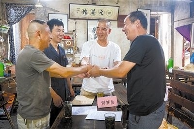 考慮鄉(xiāng)里鄉(xiāng)親,雙方都不愿對(duì)簿公堂,但又涉及合同履行中是否存在瑕疵交付的法律問題,老邵迅速將情況反饋給共享法庭。為盡快化解矛盾,當(dāng)天下午,法官趕到現(xiàn)場指導(dǎo)人民調(diào)解員,并與茶館的鄉(xiāng)賢一同開展調(diào)解。經(jīng)過法官的普法、調(diào)解員的說理,雙方厘清各自責(zé)任之后,達(dá)成調(diào)解協(xié)議。在茶館輕松和諧的氛圍里,兩個(gè)老朋友解開心結(jié),握手言和。