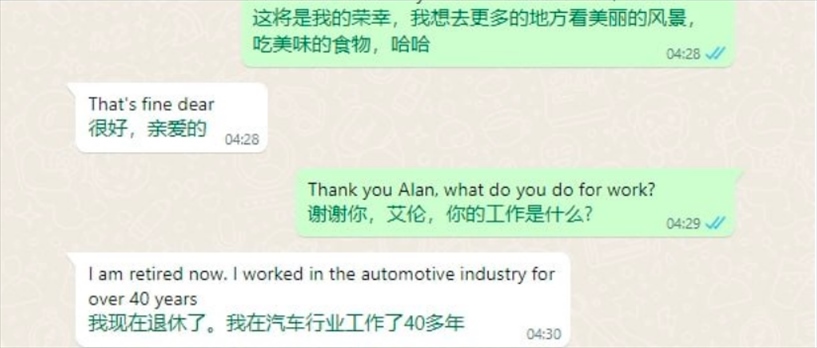 這個過程被他們稱為“切客”。張先生說,他們一般會通過分享新聞將對話引導到經(jīng)濟狀況的話題,然后進一步觀察對方有沒有投資的興趣?!叭绻磻?yīng)很好的話,就直接引導他去投資,如果不好就繼續(xù)聊感情?!?/p>