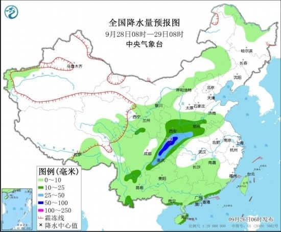 全國降水量預報圖(9月26日08時-27日08時) 圖片來源:中央氣象臺網站