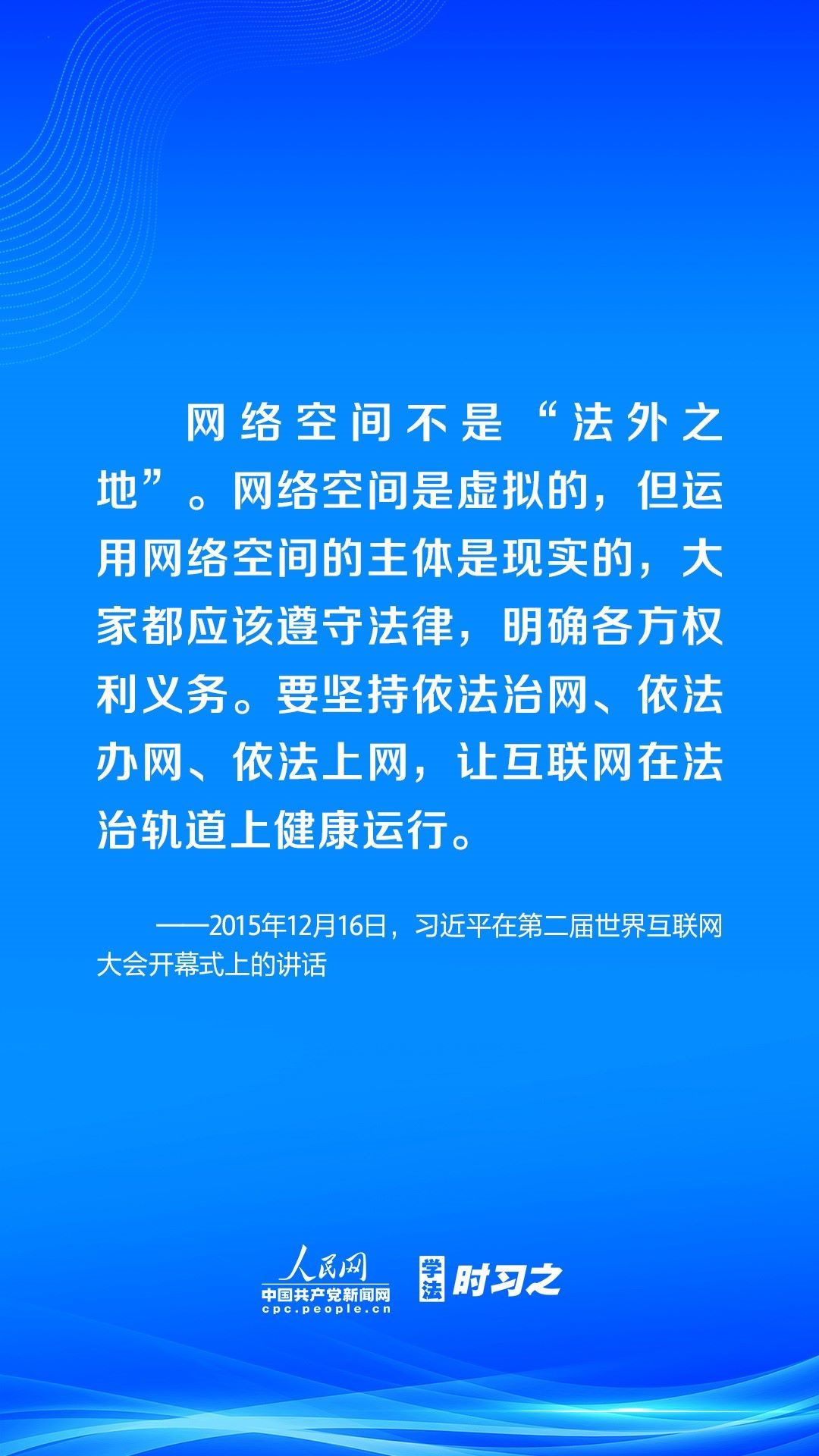 營造風清氣正的網(wǎng)絡(luò)空間,離不開法治手段的保障。黨的十八大以來,習近平總書記高度重視網(wǎng)絡(luò)法治工作,強調(diào)要堅持依法治網(wǎng)、依法辦網(wǎng)、依法上網(wǎng),讓互聯(lián)網(wǎng)在法治軌道上健康運行。