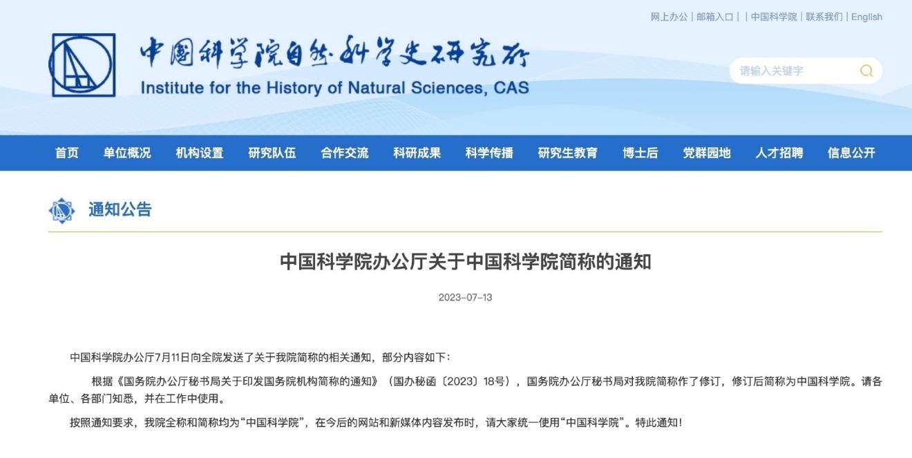 ·工作人員回應(yīng)中國科學(xué)院改簡稱:保證統(tǒng)一性和規(guī)范性。