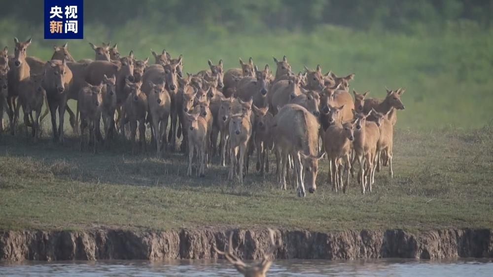 麋鹿寶寶扎堆,位于湖北荊州的石首麋鹿國家級自然保護(hù)區(qū)新生麋鹿達(dá)460頭。目前,保護(hù)區(qū)內(nèi)的麋鹿種群數(shù)量已經(jīng)達(dá)到近2000頭。