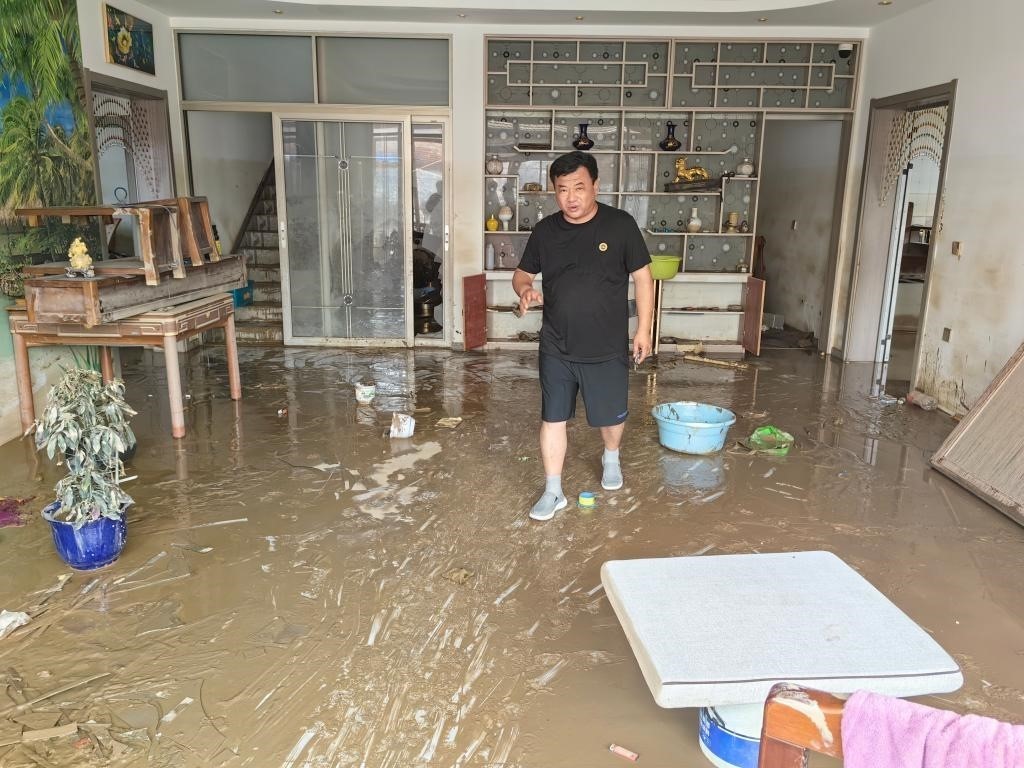 望海莊村艷天綜合商店門前,村民楊立新和趕來幫忙的親戚朋友正在一起整理受損貨品,這個村里最大的超市此次受災較重?!皳p失不少,但我們不能光等著,先把能搶救的搶救出來,能收拾的都收拾干凈,盡己所能先恢復。”楊立新說。