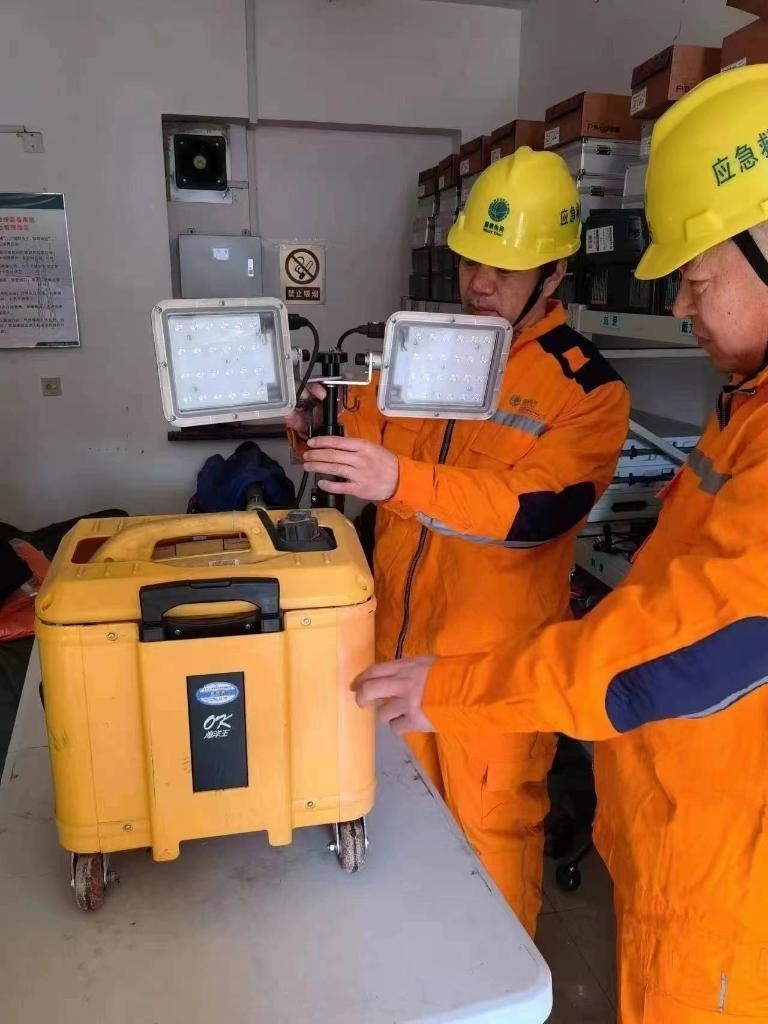在鳳城市藍(lán)旗鎮(zhèn)廣勝村小學(xué)臨時安置點,藍(lán)旗鎮(zhèn)供電所工作人員正在調(diào)試應(yīng)急照明設(shè)備。(國網(wǎng)丹東供電公司供圖)