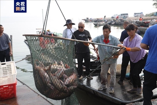 在滿載而歸的漁船上既有鯉魚、鰱魚、草魚、鱖魚、鯽魚,還有河蟹、小龍蝦、甲魚等湖鮮,其中漁民劉忠誠捕捉到一條 41.6斤的鰱魚,獲得今年的鰱魚王稱號。