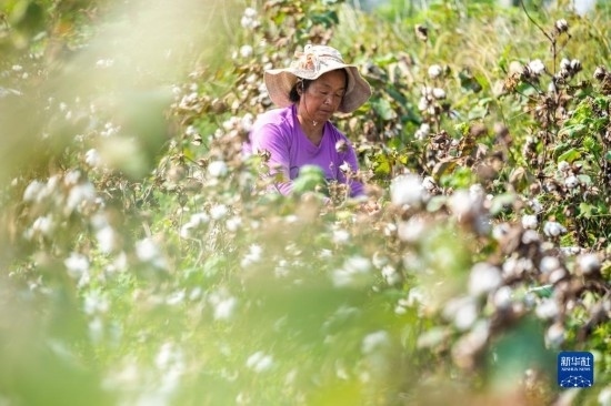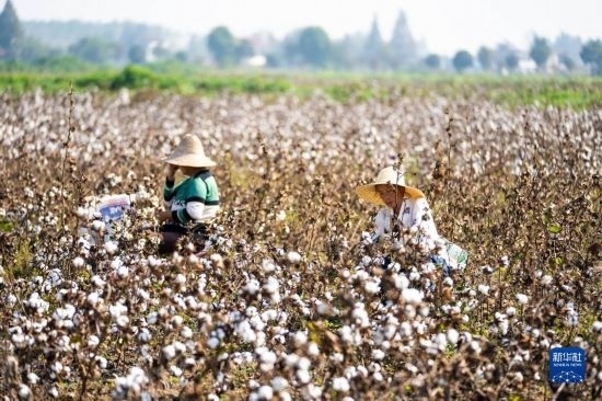 金秋十月,湖南省益陽市南縣種植的4萬余畝棉花相繼進入采收季,當?shù)孛揶r(nóng)趁著晴好天氣采摘棉花,田間地頭一片忙碌的景象。