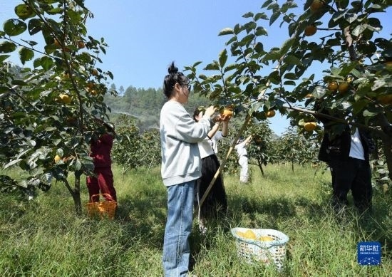 10月18日,在浬浦鎮(zhèn)盤山村,游客采摘從國(guó)外引進(jìn)的甜柿。