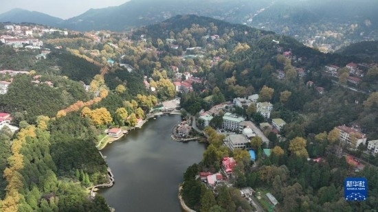 深秋時節(jié),江西廬山風景名勝區(qū)內(nèi)的樹木漸染秋色,一幢幢歷史建筑點綴其間,美麗如畫。