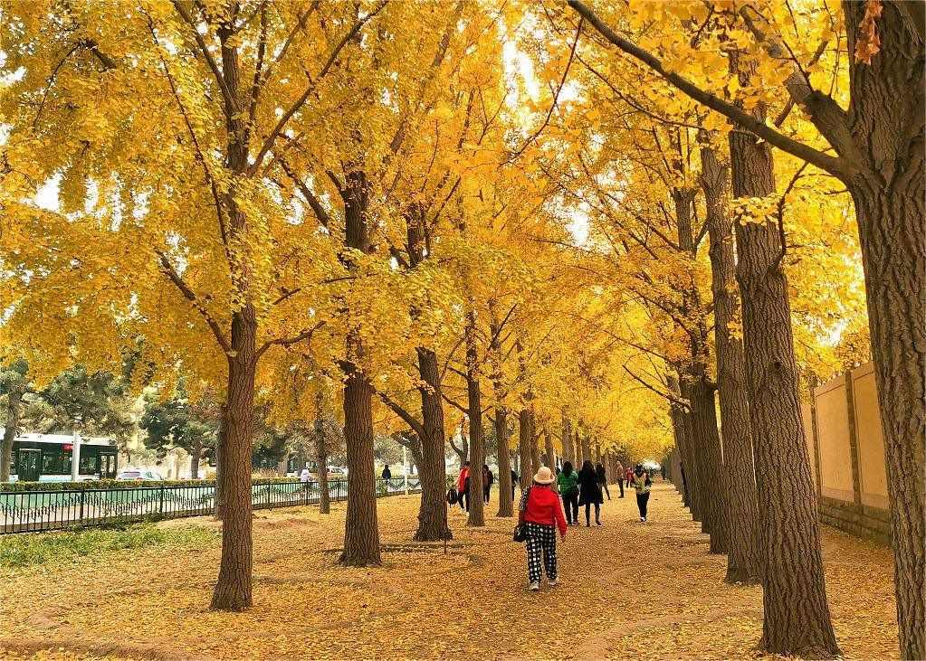 北京釣魚(yú)臺(tái)銀杏大道一片金黃,進(jìn)入最佳觀賞期,吸引市民前來(lái)打卡游玩拍照。