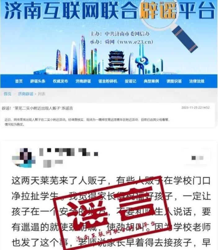 ·近日,網傳萊蕪出現(xiàn)人販子在二實小附近活動。相關部門回應,謠言。