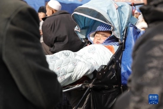 12月19日,在甘肅臨夏積石山縣大河家鎮(zhèn)大河村,小朋友在安置點睡午覺。
