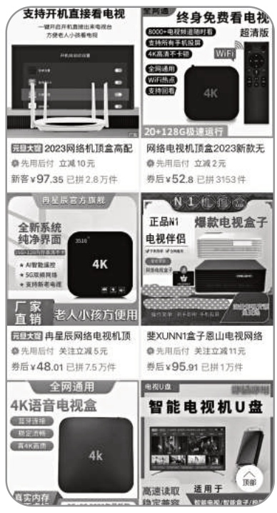 購物平臺上出售的網(wǎng)絡電視機頂盒種類很多。