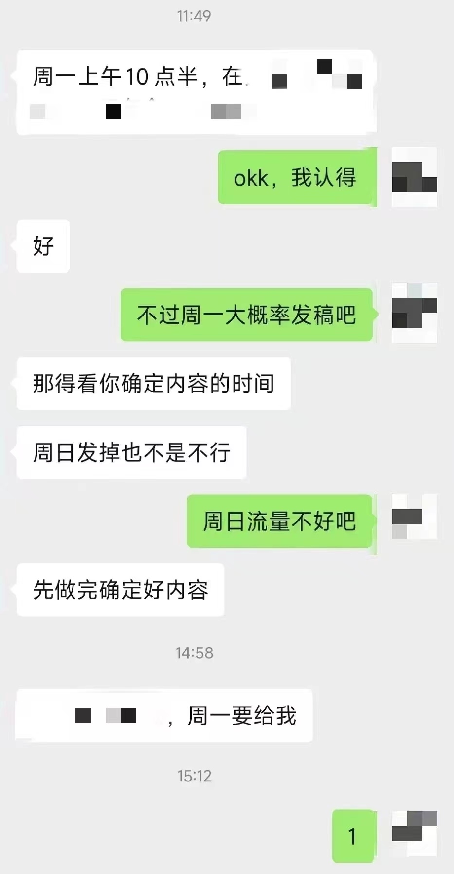 “周日流量不好吧?”她內(nèi)心氣不過,表面上卻只能迂回地勸對(duì)方改個(gè)主意。此時(shí)已經(jīng)是周五下午,距離原定的下班時(shí)間只剩下3個(gè)小時(shí)。但對(duì)方?jīng)]有理會(huì),繼續(xù)發(fā)來消息:“先做完確定好內(nèi)容?!?/p>