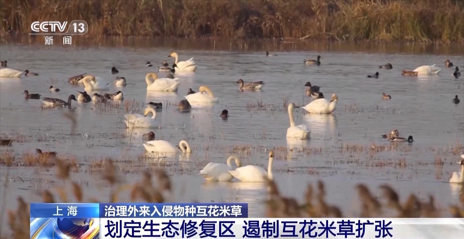崇明東灘鳥類國(guó)家級(jí)自然保護(hù)區(qū)生態(tài)修復(fù)助理工程師 孫雪娜:經(jīng)過(guò)我們科研監(jiān)測(cè),發(fā)現(xiàn)互花米草它的根系很密,原本可能會(huì)在這里有非常多的底棲生物,比如說(shuō)這個(gè)蟹類、貝類,但是因?yàn)樗苊艿倪@個(gè)根系,就導(dǎo)致這個(gè)底棲生物它沒有什么生存空間。然后對(duì)鳥類,它可能在這片取食的這個(gè)數(shù)量也很少,因?yàn)樗赡軟]什么吃的,所以這個(gè)生物多樣性就會(huì)很低。
