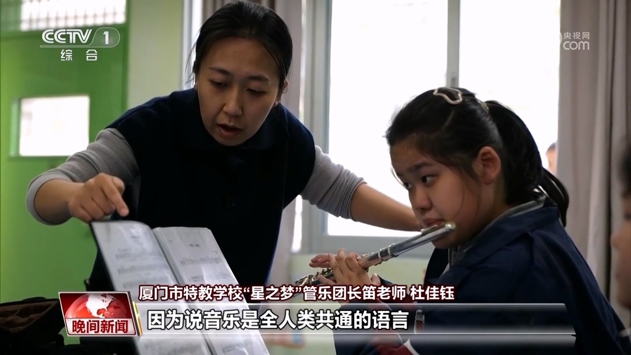 廈門市特教學(xué)?!靶侵畨簟惫軜穲F(tuán)長笛老師 杜佳鈺:因為說音樂是全人類共通的語言,我希望這件事情的意義也是能不要把這些孩子排除在全人類的音樂的共同事業(yè)的范圍之外。