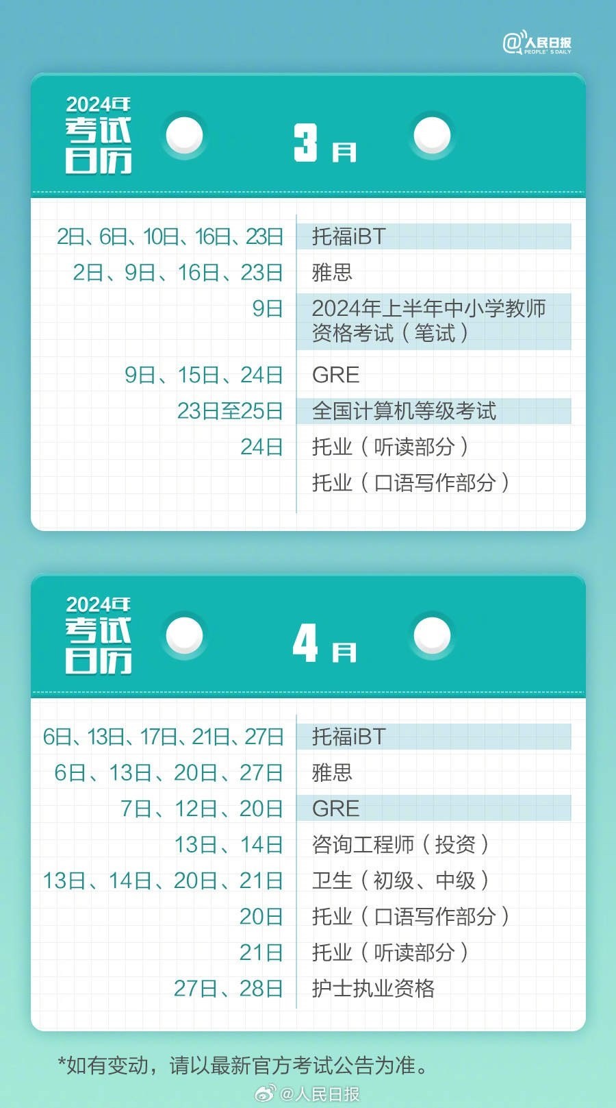 2024年已過去20多天,你的學(xué)習(xí)考試計(jì)劃開始了嗎?教師資格考試、計(jì)算機(jī)等級(jí)考試、注冊(cè)會(huì)計(jì)師、法律職業(yè)資格……提前計(jì)劃,不留遺憾,為目標(biāo)努力起來!收好2024考試日歷↓↓一起加油!