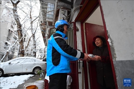 長沙:雪中送餐溫暖社區(qū)老人
