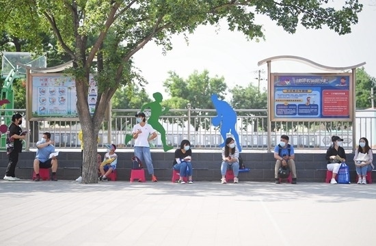 2021年6月12日,北京豐臺(tái)二中附屬看丹小學(xué)門外,陸續(xù)有家長帶著相關(guān)材料排隊(duì)等待9點(diǎn)準(zhǔn)時(shí)開啟的入學(xué)信息審核。視覺中國供圖