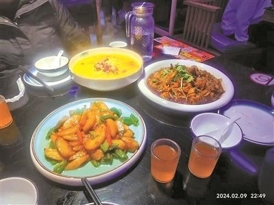 幾個小時前,他們剛剛在酒店的中餐廳享用了年夜飯,菜單包括:青檸氣泡蝦、蟹粉八珍手工面筋、藿香江團、松露水晶等,一共9道特色菜。