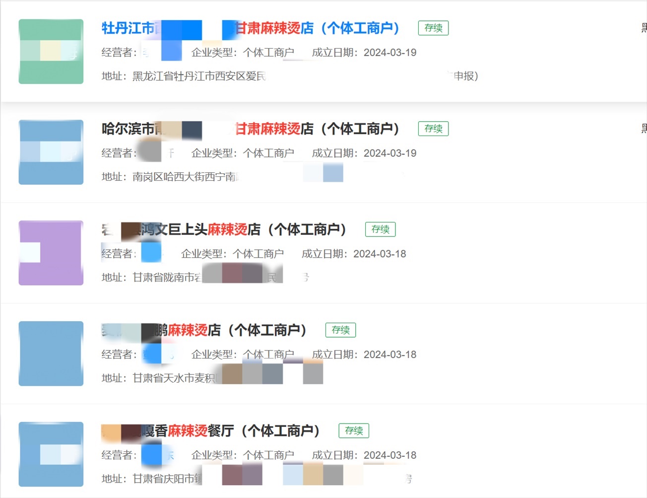 根據(jù)天眼查,今年2月至今,全國(guó)新開業(yè)的“甘肅麻辣燙”店已累計(jì)超過(guò)150家。